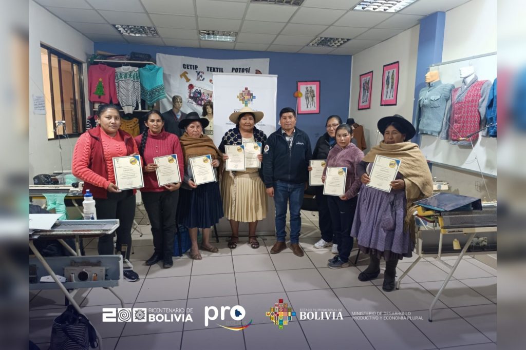 Unidades Productivas capacitadas en “Tejido de colección de ponchos y capas con diseño” reciben certificados en Potosí