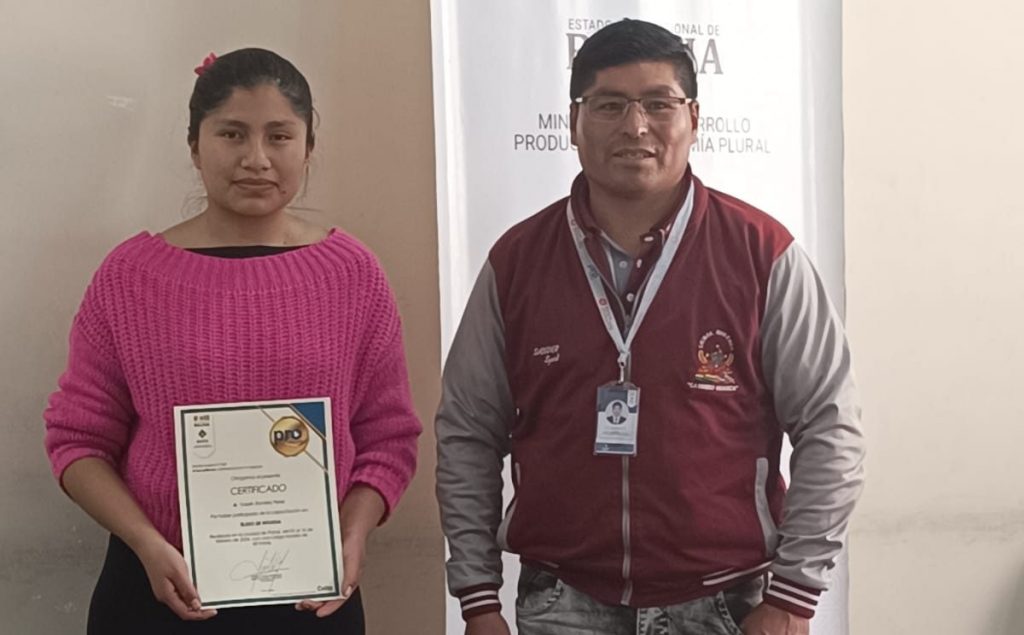 PRO-BOLIVIA Entidad Pública Desconcentrada del Ministerio de Desarrollo Productivo y Economía Plural, realizó la entrega de certificados de competencias a Unidades Productivas del rubro textil en el departamento de Potosí, con el objetivo de fortalecer y mejorar la calidad de la producción boliviana.