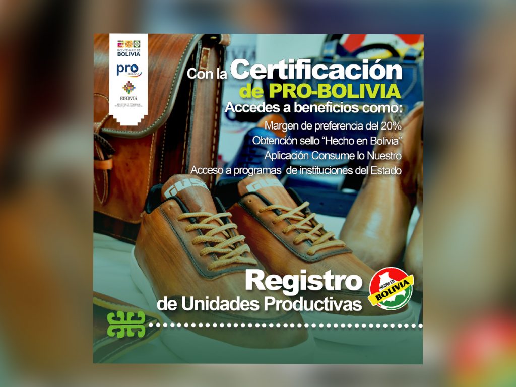 PRO-BOLIVIA entidad desconcentrada del Ministerio de Desarrollo Productivo y Economía Plural, mediante el área de registro y acreditación, realiza la emisión de certificados y renovación a unidades productivas de la Micro, Pequeña, Mediana y Grande Empresa, Asociaciones de Pequeños Productores Urbanos y Rurales, Organizaciones Económicas Campesinas y otras de características similares que produzcan, fabriquen […]